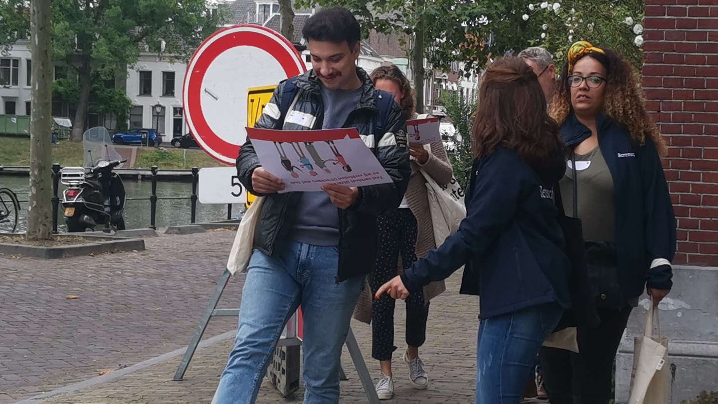 Taal verbindt, dat is wat Taal Doet Meer tijdens de viering wilde laten zien. Dat is goed gelukt! Na een warm welkom en heerlijke chipolatataart – onze host de Vrijwilligerscentrale bestond ook 35 jaar – vertrokken we richting de Dom, met de routekaart in onze hand en een goody bag voor onderweg. Ieder groepje bestond uit een mix van medewerkers van bedrijven en vrijwilligers en deelnemers van Taal Doet Meer. Samen deden we opdrachten en beantwoordden we leuke vragen als ‘Hoe vier jij jouw verjaardag?’. Het was fijn om elkaar en de stad zo beter te leren kennen.