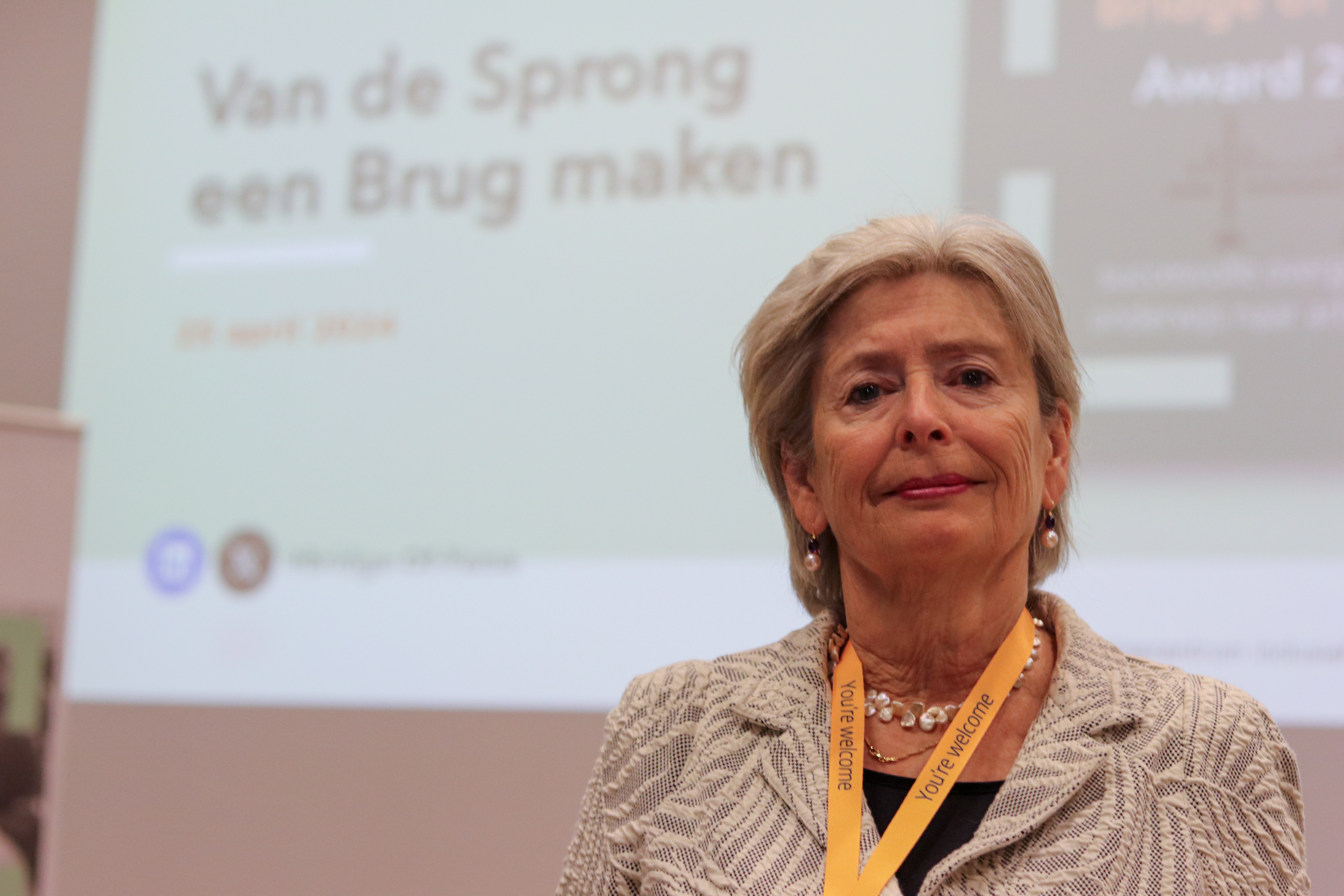 De award werd uitgereikt door Guusje ter Horst, aanjager van het programma ‘Doe Onbeperkt Mee’ van het Ministerie van VWS. “Ik vind het belangrijk dat onderwijsinstellingen zich inspannen om te zorgen dat mensen met een hbo- of universitaire opleiding én een beperking goed aan het werk komen. Ik mag vandaag een prijs uitreiken aan een onderwijsinstelling die dat op een hele goede manier doet.”